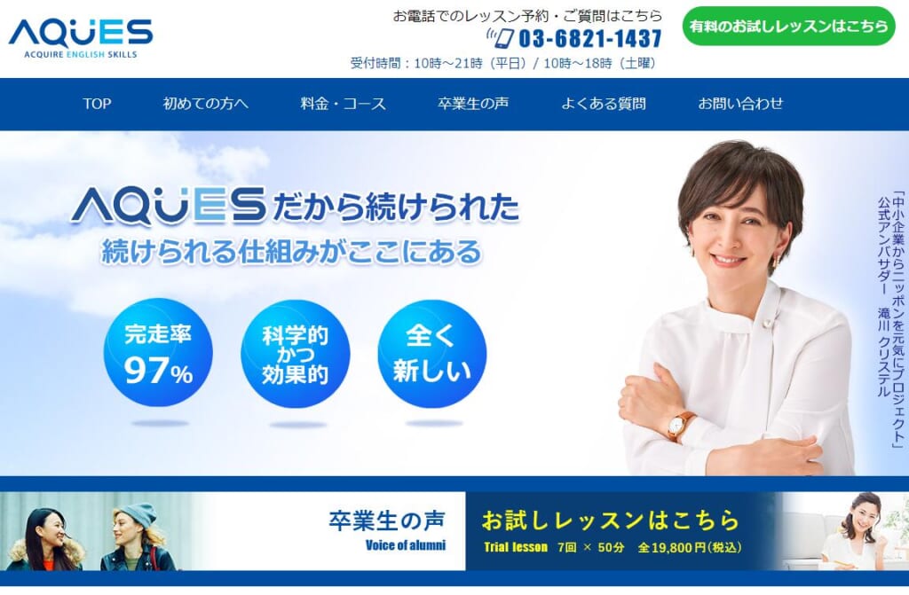 アクエス英会話は、株式会社AQUESが提供するオンライン英会話サービスです。