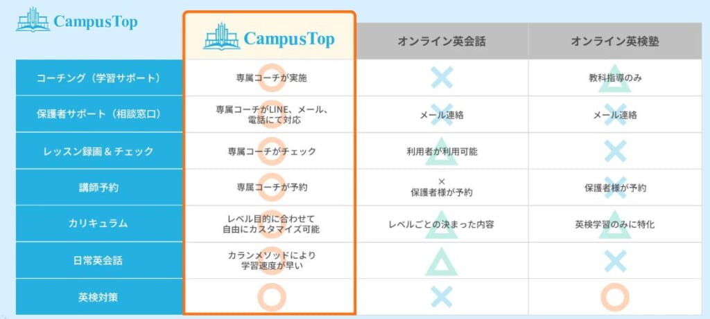 CampusTopが注目されるのは、単に「子ども向けオンライン英会話」だからじゃありません。