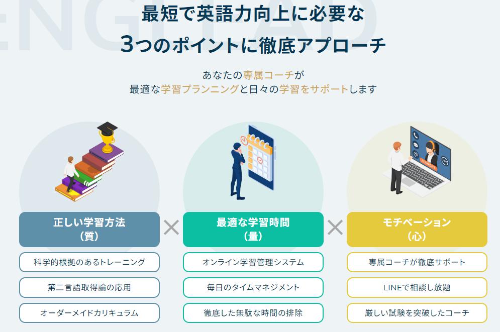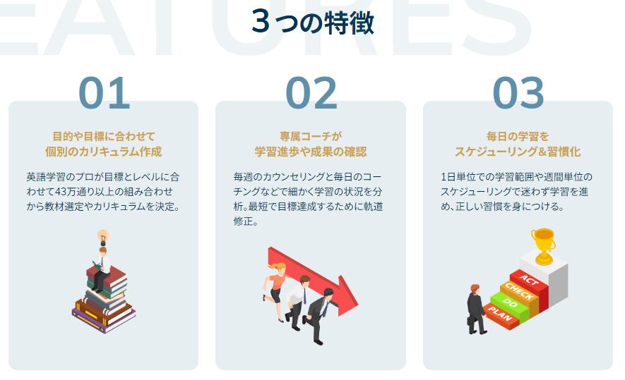 専属の日本人コーチが個人個人を担当し、その人に合ったカリキュラムや教材、スケジュールなどを提案。