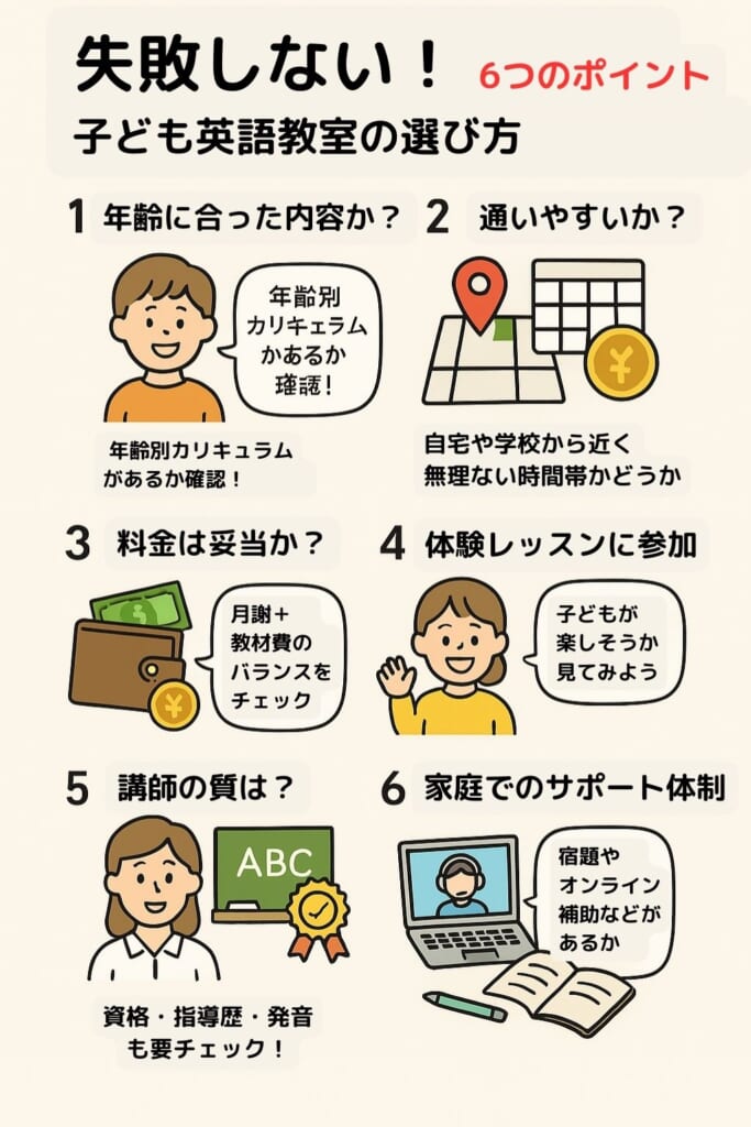 ここからは、子どもにぴったりの英語教室を見つけるために、知っておきたいポイントをお伝えします!