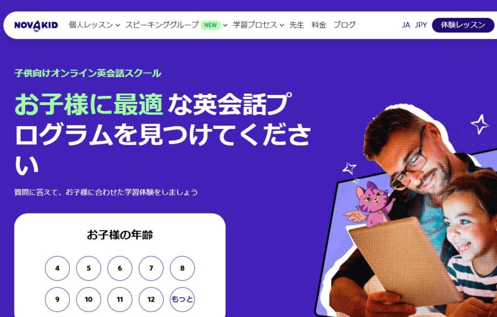 Novakid(ノバキッド)は、4〜12歳の子ども向けオンライン英会話サービスです。全てのレッスンが英語のみで行われ、ネイティブまたは資格を持つ講師が指導します。