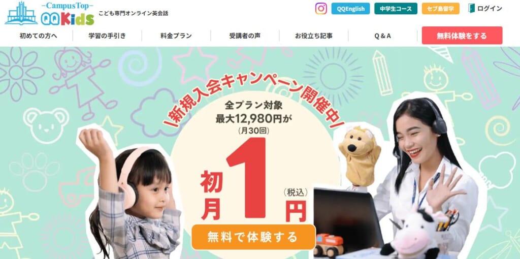 QQキッズは、3歳から小学校低学年までを対象とした子供向けオンライン英会話です。