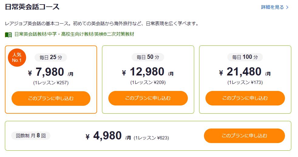 レアジョブ英会話では毎日25分プランや毎日50分プランなど、定額で毎日レッスンを受けられるプランが用意されています。
