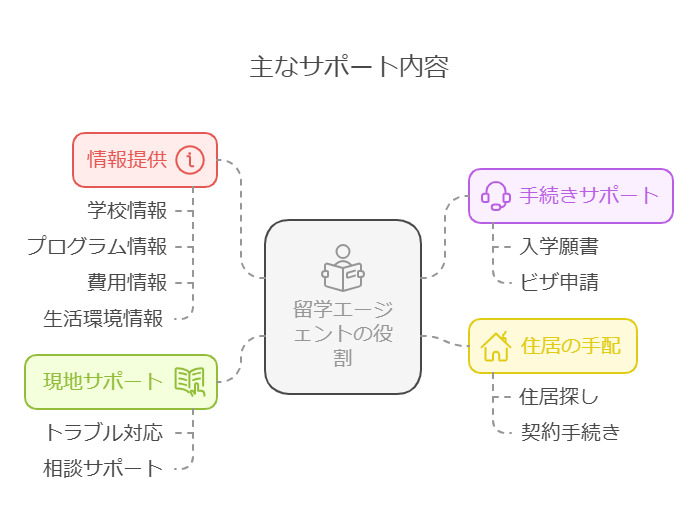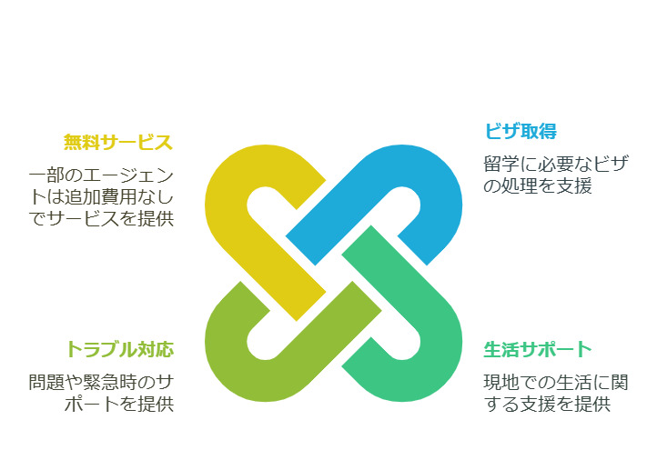 以上のように、留学エージェントのサポート内容は多岐に渡ります。