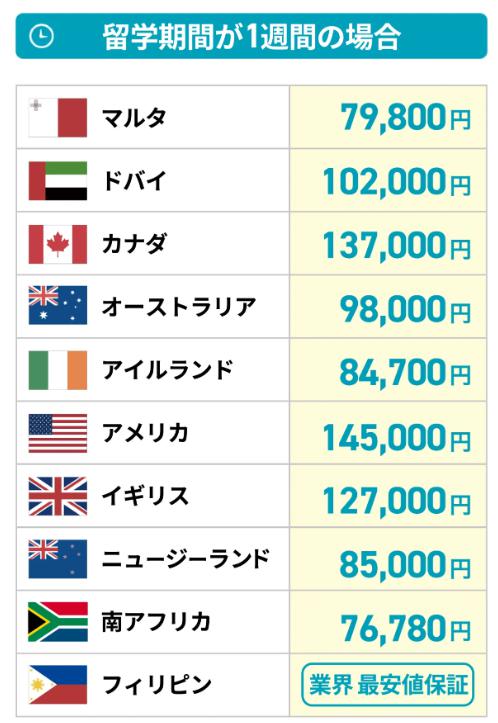 他社の最大半額で留学が可能