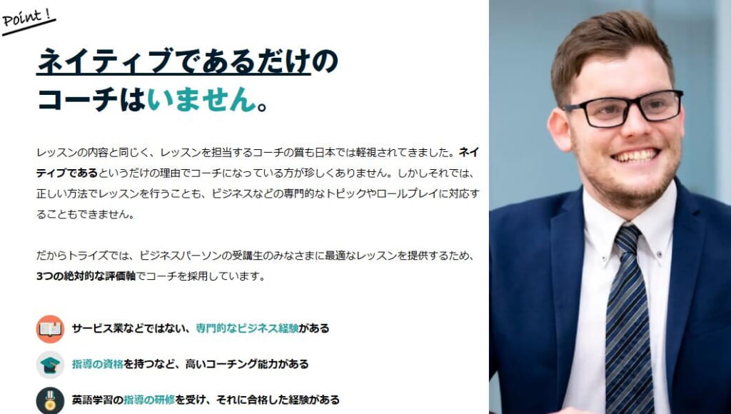 トライズでは、ネイティブ講師によるレッスンが行われますが、講師との相性が合わない場合、学習効果が十分に得られないことがあります。