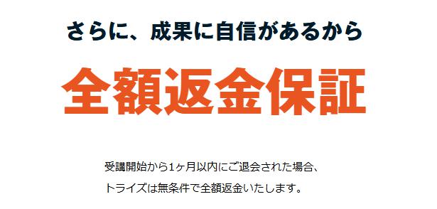 トライズには、万が一サービスに満足できなかった場合に備えて全額返金保証制度があります。